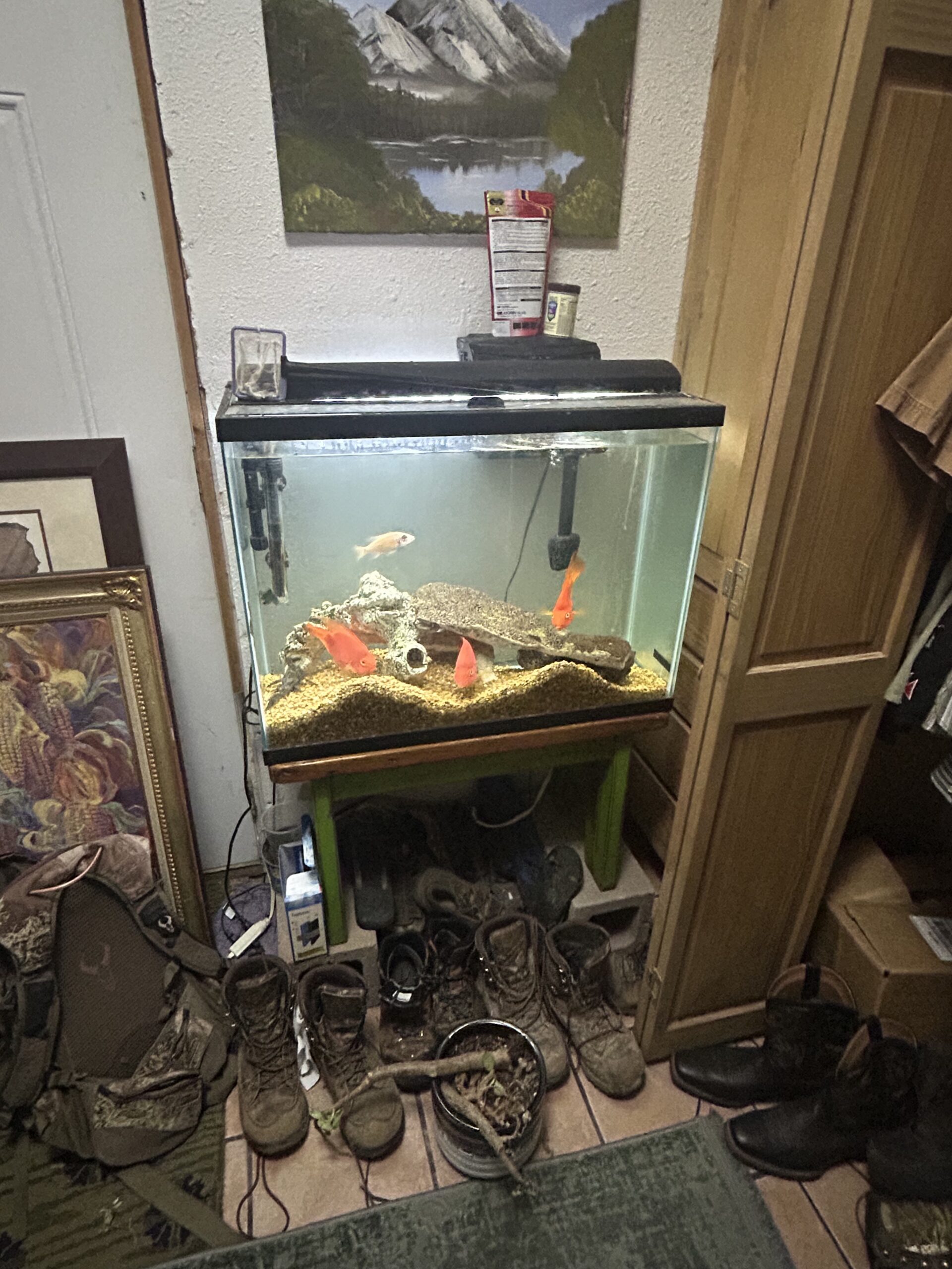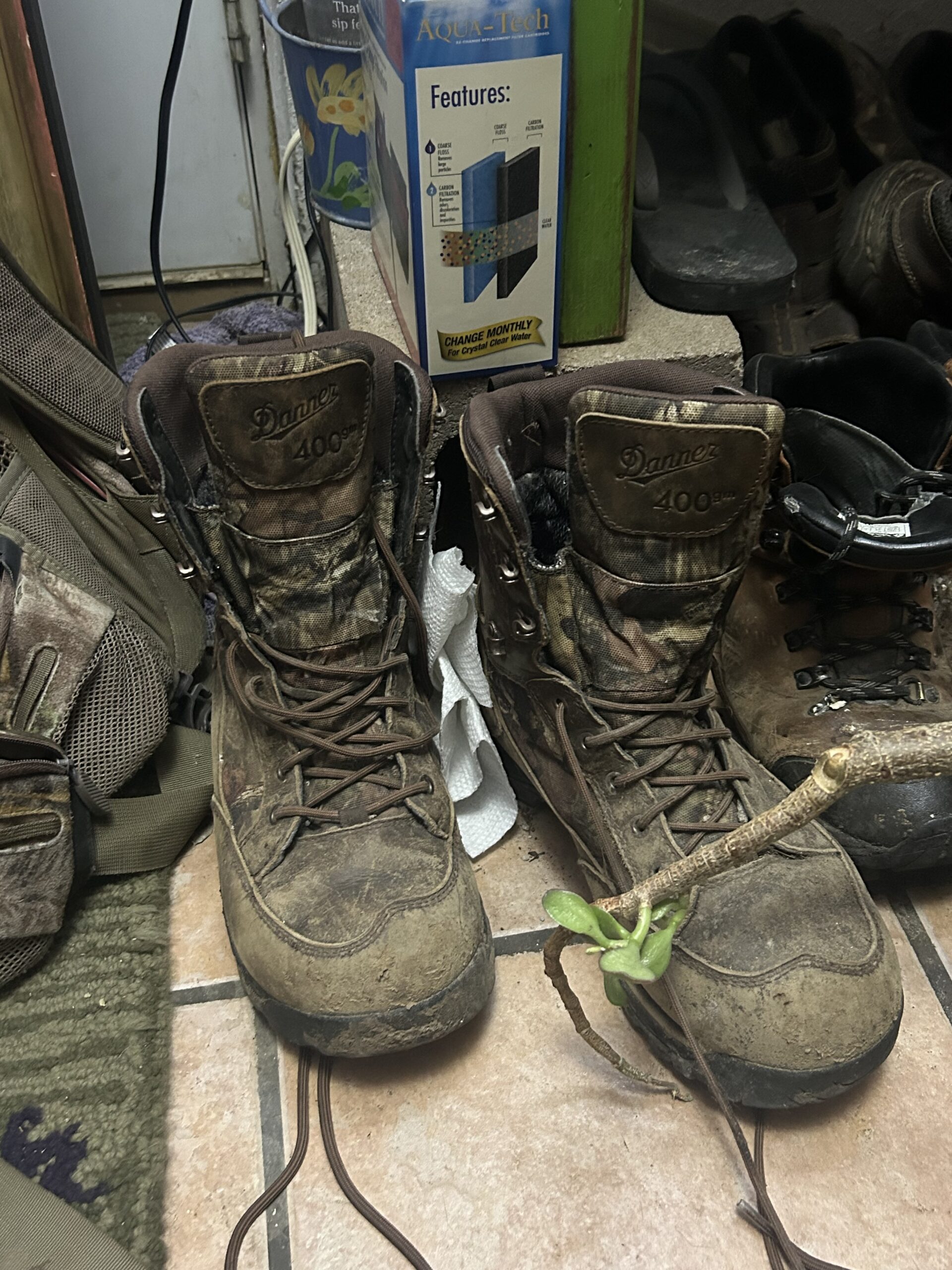 Investigators review evidence from the home, including a possible bloodstain and muddy boots.