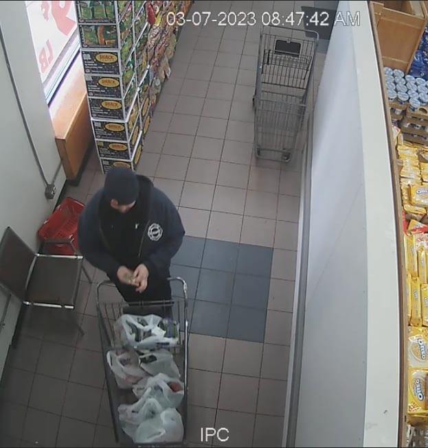 Sean is captured on surveillance video shopping at Jerry’s Fruit & Garden in Niles.