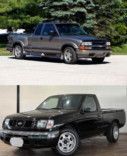 Top: Chevy S-10, the model of truck that Ernest allegedly bought for his daughter sometime before 1992. Bottom: Nissan Datsun, the model of truck reported by a witness as being parked in Elena’s driveway the morning she was killed.